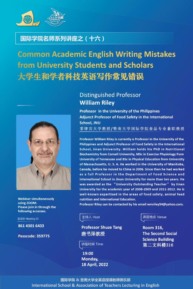 國(guó)際學(xué)院名師系列講座之(十六):大學(xué)生和學(xué)者科技英語寫作常見錯(cuò)誤