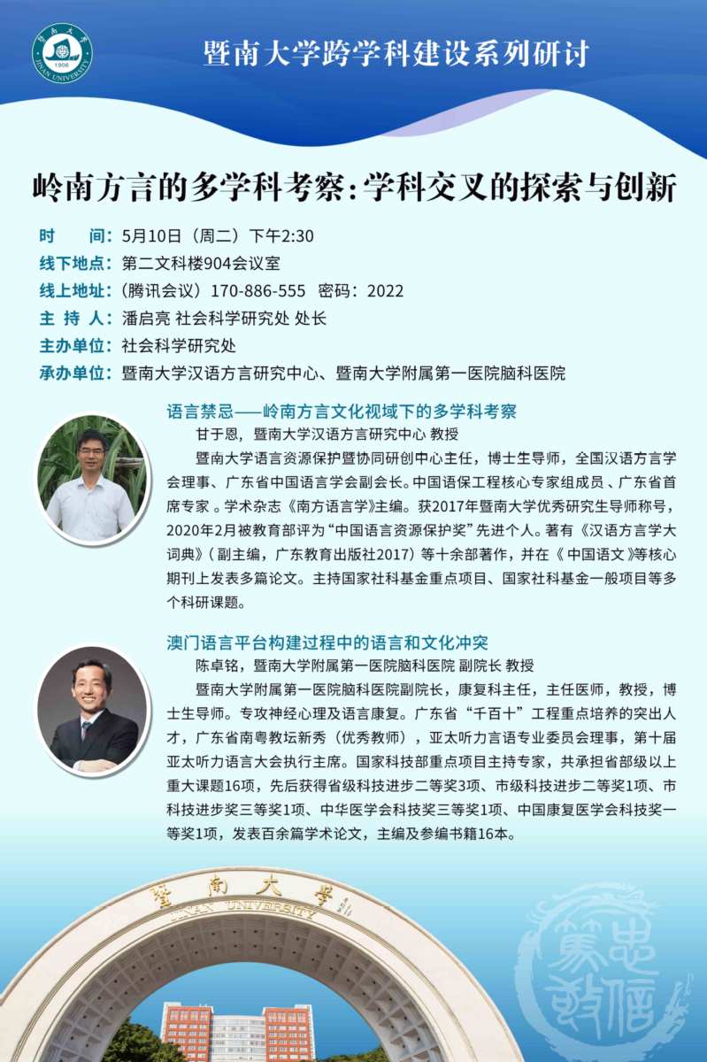 研討主題:嶺南方言的多學(xué)科考察:學(xué)科交叉的探索與創(chuàng)新
